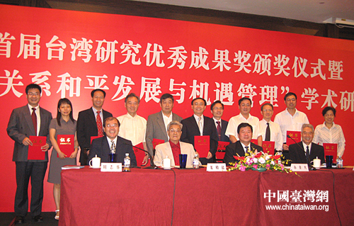 中国台湾网8月31日北京消息 今天上午,全国台湾研究会在此间举行了首届台湾研究优秀科研成果颁奖活动。国务院台湾事务办公室副主任孙亚夫、全国台湾研究会执行副会长周志怀、全国台湾研究会副会长姜殿铭、全国台湾研究会副会长许世铨出席了颁奖活动。