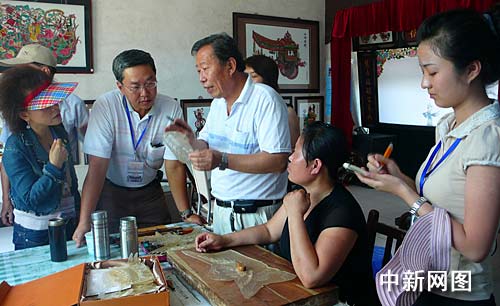 台湾记者对侯马皮影进行参观访问。文芳 摄