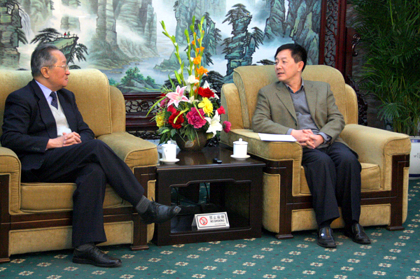 国台办副主任叶克冬(右)与中国互联网协会副理事长高新民会谈。(中国台湾网记者 李徽 摄)
