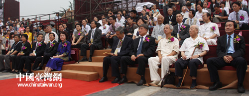出席今天上午开幕式的嘉宾有:原全国人大常委会副委员长、世界汉语教学学会会长许嘉璐,文化部副部长、中华文化联谊会顾问李洪峰,国务院台湾事务办公室交流局局长李唯一,台湾“文化总会”副会长林澄枝、林谷芳,台湾“文化总会”秘书长杨渡,台湾艺术大学校长黄光男,中国艺术研究院研究员、著名艺术家欧阳中石、沈鹏等近百名来自两岸的文化界代表性人士、专家学者和艺术家。