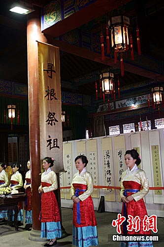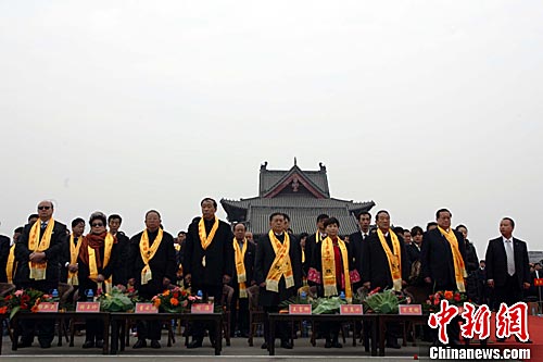 4月5日上午,中国·洪洞二十一届大槐树寻根祭祖大典在山西洪洞大槐树寻根祭祖园举行,来自海内外的万余名华人汇聚于此,虔诚祭祖。中新社发 张云 摄
