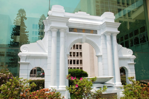 新竹清华大学行政大楼后方有个拱门造型的“清华园”,这是以北京清华二校门清华园1/3比例缩小制作的,展现两岸清华的血脉渊源。 图片来源:“中央社”