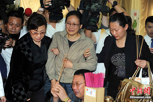 首批阿里山小火车意外事件死者家属,29日早上到殡仪馆认尸。马瑞云家属在嘉义市立殡仪馆灵堂,见到死者遗照时难掩内心哀伤。首批死伤大陆游客家属及大陆旅行社人员当日凌晨抵台,随即搭车南下嘉义。中新社发 谭达明 摄