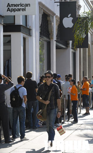 6月19日,顾客在美国加利福尼亚州帕萨迪纳市的苹果专卖店外排队等待购买iPhone 3GS手机。苹果公司新一代iPhone 3GS手机当天正式开始发售,许多iPhone迷在苹果专卖店开始营业前就排起了长队,期待第一时间拿到这款手机。 新华社记者戚恒摄