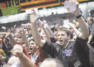 美国库存报告出台后,国际油价大幅下跌,到收盘时,纽约商品交易所8月份交货的轻质原油期货价格每桶下跌4.14美元,收于134.6美元。国际油价在11日创下每桶147.27美元历史新高后,由于市场担心美国经济出现问题将影响国际原油市场需求,国际油价15日开始大幅回落,纽约市场油价出现自1991年海湾战争以来最大单日跌幅。图为16日交易员在美国芝加哥商品交易所竞价交易。新华社/路透图片