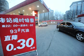 不久前,北京市崇文门附近一家中石化加油站推出限时特惠服务,93#汽油每升油价直降0.3元。记者 金良快 摄