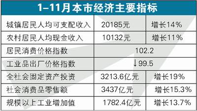 统计显示,吃、穿、用、烧类商品分别实现零售额854.3亿元、321.7亿元、1968.8亿元和292.2亿元,同比分别增长14%、13.5%、18.1%和3.9%。11月份,食品类价格涨幅较高。其中,猪、牛、羊肉价格分别上涨53.8%、59.1%和57%;鲜菜价格上涨39.2%;食用油价格上涨18.9%;禽蛋价格上涨14.8%。数据还显示,今年前11个月,北京市社会消费品零售额已超过上年全年水平,达3437亿元,比上年同期增长15.3%,达到1997年以来的同期最高增幅。