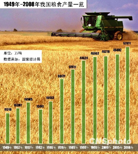 1949年-2008年中国粮食产量一览上传时间:2009年9月10日 中新社发 ANP 作