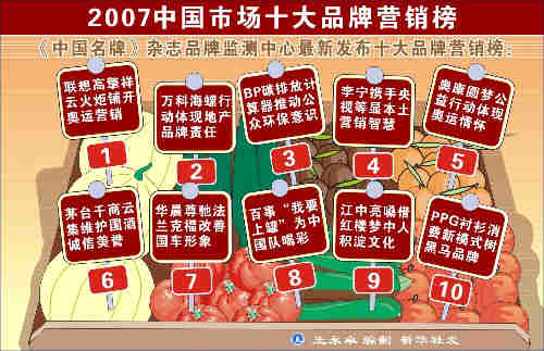 图表: 2007中国市场十大品牌营销榜 新华社发