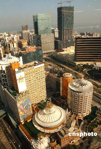 资料图:图为西湾湖畔葡京、永利、星际、金沙、美高梅赌场连成一片。 中新社发 史利 摄