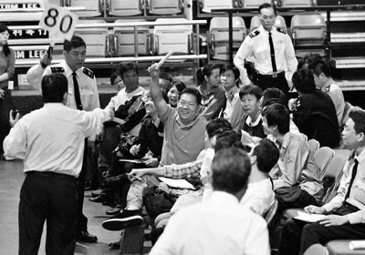 被视为香港经济“探热针”的铜锣湾维多利亚公园年宵市场,15日展开一连两天摊位竞投。疑受今年初年宵的“落雨坏生意”经验影响,昨天竞投气氛平淡,面积最大的熟食“档王”于3分钟内极速以38万元“扑锤”成交,较去年跌22%;其余2个面积较小的熟食摊档成交价共64.5万元,则较去年升15%。昨日177个成交湿货摊档连同3个熟食摊位,全日总成交额372万元,较去年微跌约7%。有投得摊位者对前景不太乐观,估计来年的年宵会平手离场。