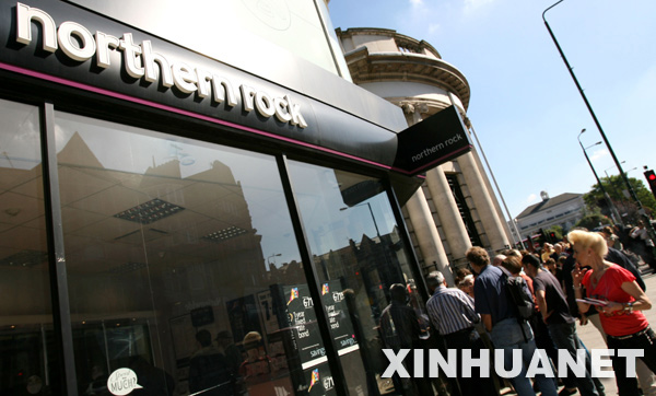 9月15日,在英国伦敦,储户在诺森罗克银行的一家营业所外排队等待取款。仅14日当天,诺森罗克银行就有约10亿英镑(约合20亿美元)的存款被储户提走。 新华社记者谢秀栋摄