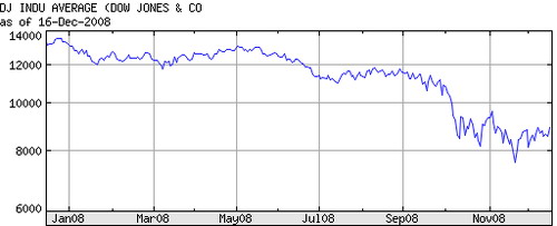 道琼斯指数一年走势图,年初至今的跌幅接近40%