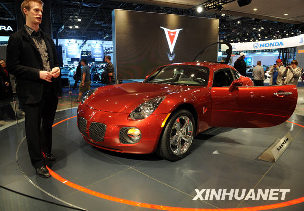 4月27日,通用汽车公司宣布新的重组计划。通用宣布将放弃旗下一直表现不佳的庞蒂亚克(Pontiac)品牌,以削减成本。通用还宣称将在2010年底前削减掉四成以上经销商,关闭13个全球工厂,削减21000个美国本土工作岗位。这是4月10日在纽约举办的一场国际车展上拍摄的庞蒂亚克汽车。新华社记者谷欣容摄 |