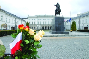 波兰总统卡钦斯基乘坐的图-154专机4月10日在俄罗斯西部城市斯摩棱斯克附近坠毁,机上包括波兰总统及夫人、央行行长、三军首长和众位议员在内的97人无一生还,卡钦斯基原定于10日率团抵达斯摩棱斯克参加纪念“卡廷”事件70周年的活动。此次空难震惊了世界,波兰举国也陷入沉重悲哀之中。波兰政府已宣布未来一周为全国悼念周。