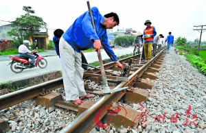 今年4月底,一群越南工人在维修连接河内与胡志明市的铁路路基。