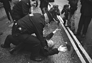 11月21日,都柏林,一名抗议者被警察制服。当天,爱尔兰内阁讨论是否向欧盟递交求援申请,引发抗议。