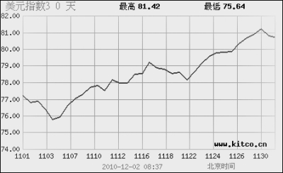 北京时间12月2日晚间,反映美元强弱程度的指标———美元指数仍稳稳站在8 0以 上 。 出 人 意料,从美第二轮量化宽松政策出台至今,美元不跌反涨,从11月初到12月初,反弹幅度接近7%。全球 股 市 似 乎 也 受 其“牵制”,同期走出一轮下跌行情。美元此轮反弹基础是否牢固?全球市场下一步的资金流向会有何变化?