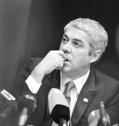 3月25日,在比利时首都布鲁塞尔,已经提出辞职的葡萄牙总理苏格拉底出席欧盟峰会后的记者招待会。新华社记者 武 巍摄