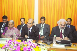 澳大利亚央行3日召开月度货币政策会议,决定继续维持当前4.75%的基准利率不变。这是澳大利亚央行今年以来第四次作出上述决定,符合此前市场预期。澳大利亚央行行长格伦·史蒂文斯当天表示,虽然近期公布的经济数据显示澳大利亚通胀水平超过预期,但与2008年相比通胀水平仍处下降态势,通胀依然可控。然而,从长期看来,通胀水平预计会伴随经济发展而继续升高。图为印度央行行长杜武里·苏巴拉奥(前排中)在记者招待会上。