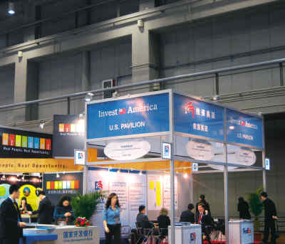 图为中国对外投资合作洽谈会上的“投资美国”主题展位。 尹晓宇摄