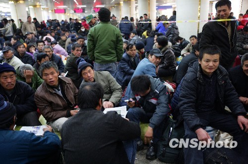 11月13日晚,受北方暴雪天气影响,北京西站仍有多趟出发列车因京广线上石家庄、郑州等地的暴雪而晚点,近千名旅客仍然滞留。11月12日中午西站已紧急启用地下列车候车室,安排旅客候车。图为滞留在地下列车候车室的旅客。 中新社发 刘震 摄