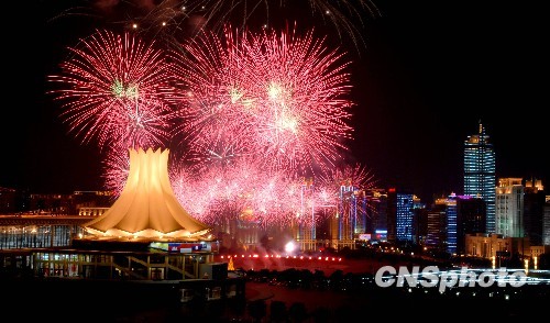 1月6日晚,广西南宁在民歌广场、南湖公园名树博览园、相思湖主题公园同时举行大型音乐焰火晚会,庆祝中国-东盟自由贸易区建成。 中新社发 彭寰 摄