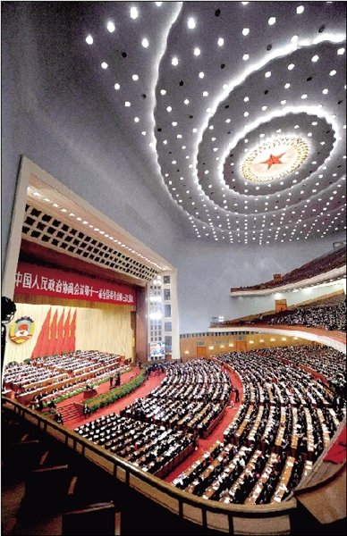昨天下午,全国政协十一届三次会议在北京人民大会堂开幕。本报记者 范继文 摄