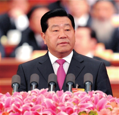 全国政协主席贾庆林作工作报告。(来源:京华时报 摄影:新华社记者黄敬文)
