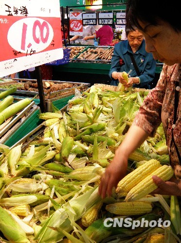 2010年6月6日,湖北宜昌市民在超市选购蔬菜、食品。据悉,针对部分媒体预测“下半年通胀压力巨大,预计CPI涨幅在7%左右”的观点,国家发改委有关部门负责人近日澄清称,下半年CPI涨幅达到7%的判断是没有事实根据的。而且,中国今年将呈现出经济平稳较快增长,物价温和上升的格局,不会出现所谓的“滞胀”。 中新社发 刘君凤 摄