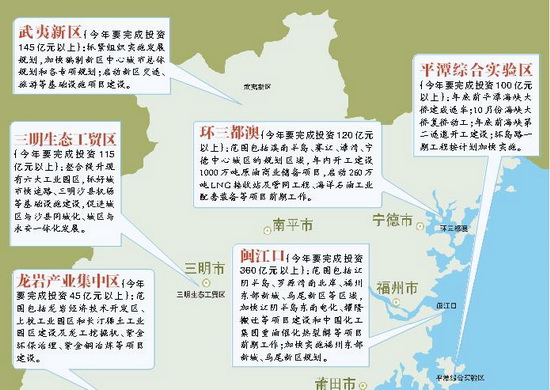 闽江口:范围包括江阴半岛、罗源湾南北岸、福州东部新城、马尾新区等区域,今年要完成投资360亿元以上。