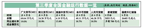 数据显示,人民币贷款前三季度增加6.30万亿元,9月份增加5955亿元,不但高于7、8月份数据,也高于市场预期的5000亿元左右,显示季末银行放贷的冲动。