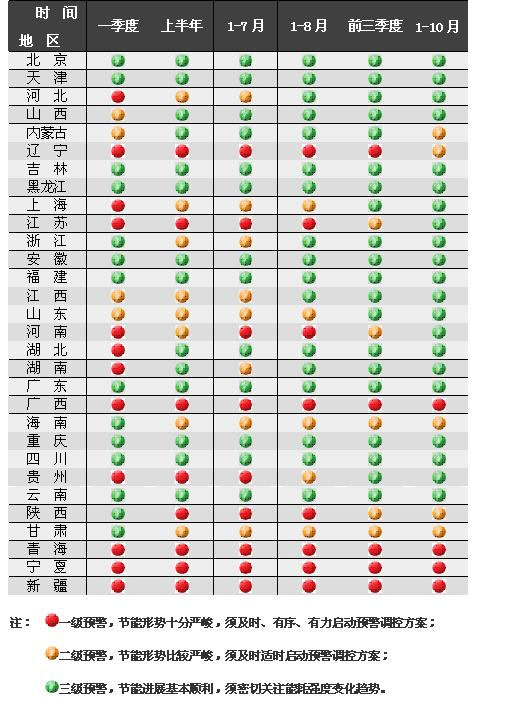 中新网11月22日电 据发改委网站消息,1-10月份,广西、青海、宁夏、新疆等4个地区预警等级为一级,内蒙古、辽宁、海南、陕西、甘肃等5个地区预警等级为二级,北京、天津、河北、山西、吉林、黑龙江、上海、江苏、浙江、安徽、福建、江西、山东、河南、湖北、湖南、广东、重庆、四川、贵州、云南等21个地区为三级预警。西藏缺乏统计数据,没有进行预测。