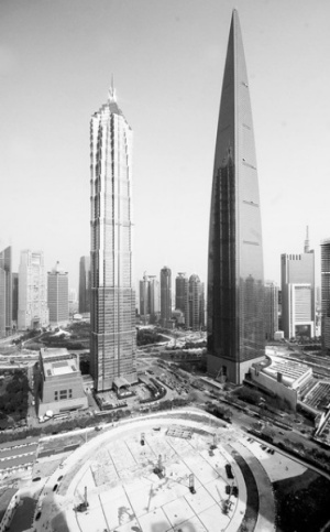 位于上海环球金融中心和金茂大厦旁的上海中心工地(圆形地基)已经准备就绪,即将正式开工(2008年11月27日摄)作为区域中心城市,上海通过产业转移为现代服务业和先进制造业腾出空间,跨国公司总部聚集已成为上海一大景观。新华社发