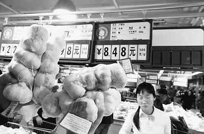 11月29日,北京市民在超市选购大蒜,蒜头价格是每斤8.48元。