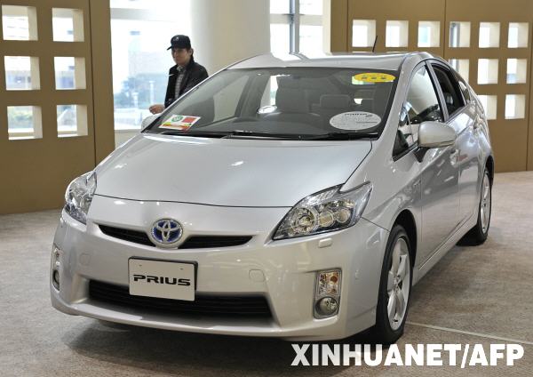 这是2月5日拍摄的日本丰田公司东京展厅里停放的一辆丰田普锐斯混合动力车。丰田公司新型环保汽车的主打产品、目前在日本最畅销的混合动力车普锐斯日前被曝刹车系统出现问题。据日本媒体5日报道,丰田已经决定在日美两大市场召回该车,总量预计为27万辆。新华社/法新