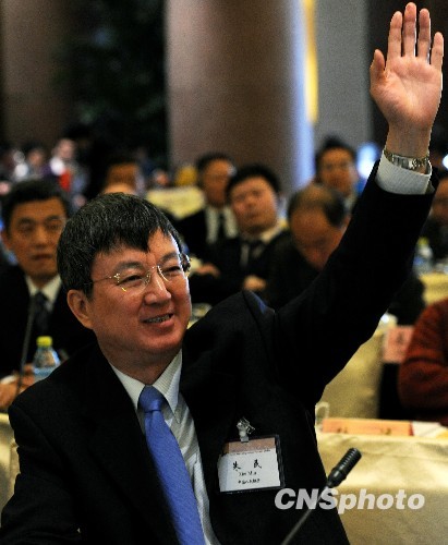 3月20日,中国发展高层论坛2010在北京举行,国内外经济专家济济一堂。图为中国人民银行副行长朱民举手提问台上的专家。 中新社发 刘震 摄