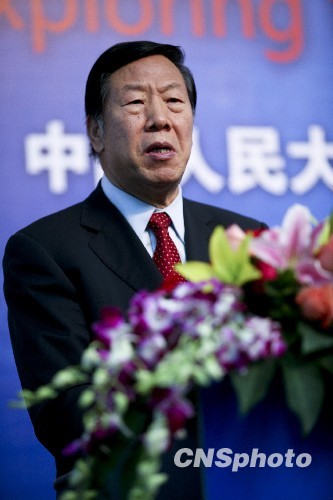 2010年1月9日,第十四届中国资本市场论坛在中国人民大学逸夫会议中心召开,本次论坛的主题为“大国经济与大国金融—探寻中国金融崛起之路”。全国社会保障基金理事会理事长戴相龙在做主题演讲时表示,人民币国际化是中国金融崛起标志。 (图为资料图) 中新社发 陆欣 摄