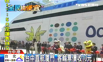 台中直航厦门,首航促销船票只要10元新台币。(图片来源:台湾TVBS电视台)