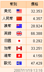 台币汇率公告2007.11.19
