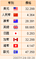 台币汇率公告2007.12.04