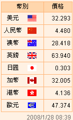 台币汇率公告2008.01.28