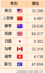 台币汇率公告2008.01.29