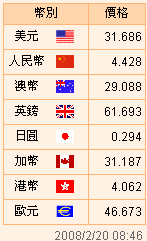 台币汇率公告2008.02.18