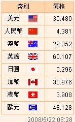 台币汇率公告2008.05.22