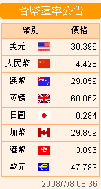 台币汇率公告2008.07.08