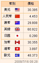 台币汇率公告2008.07.16