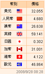 台币汇率公告2008.09.28