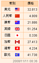台币汇率公告2008.11.11