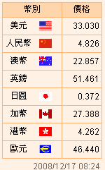 台币汇率公告2008.12.17